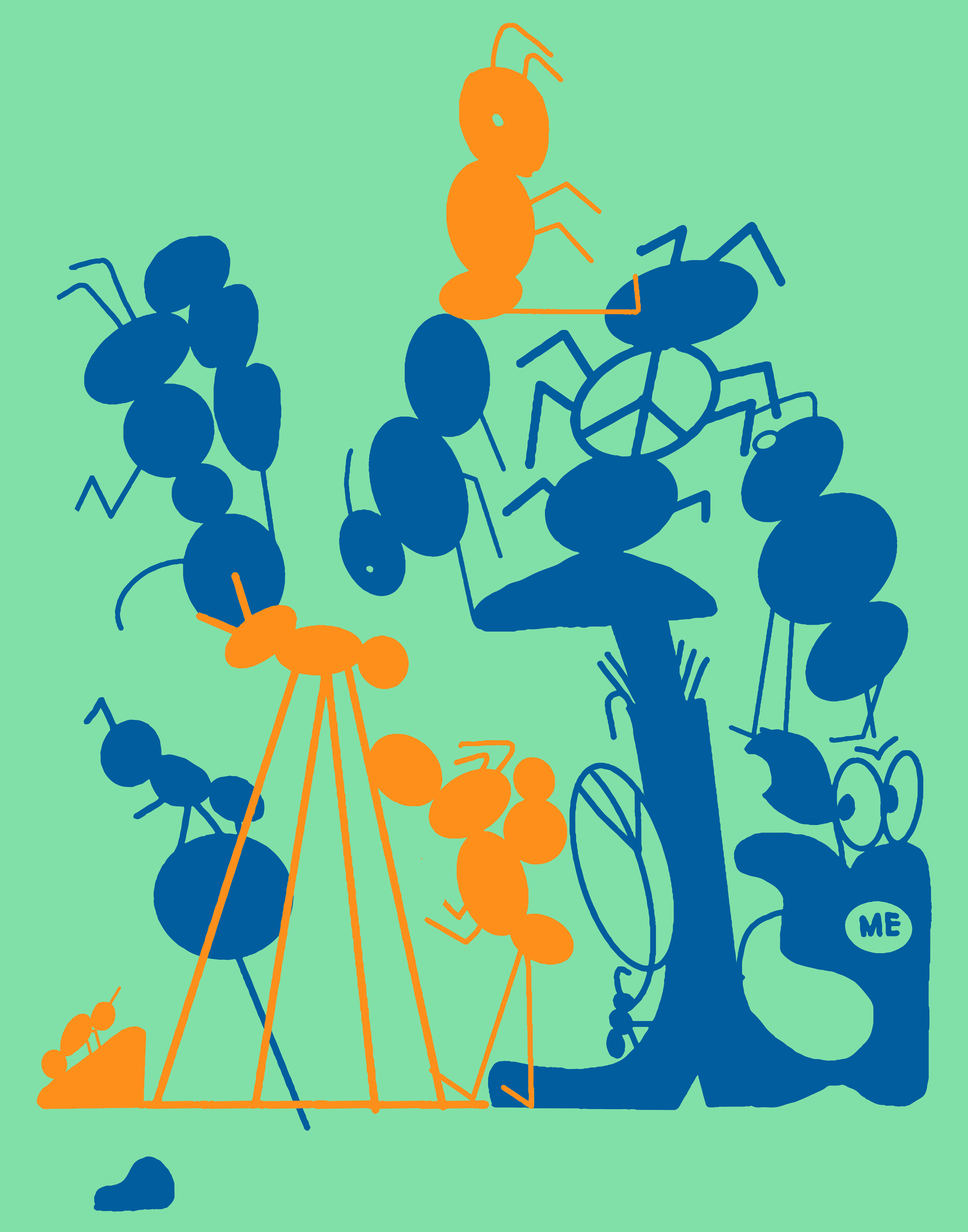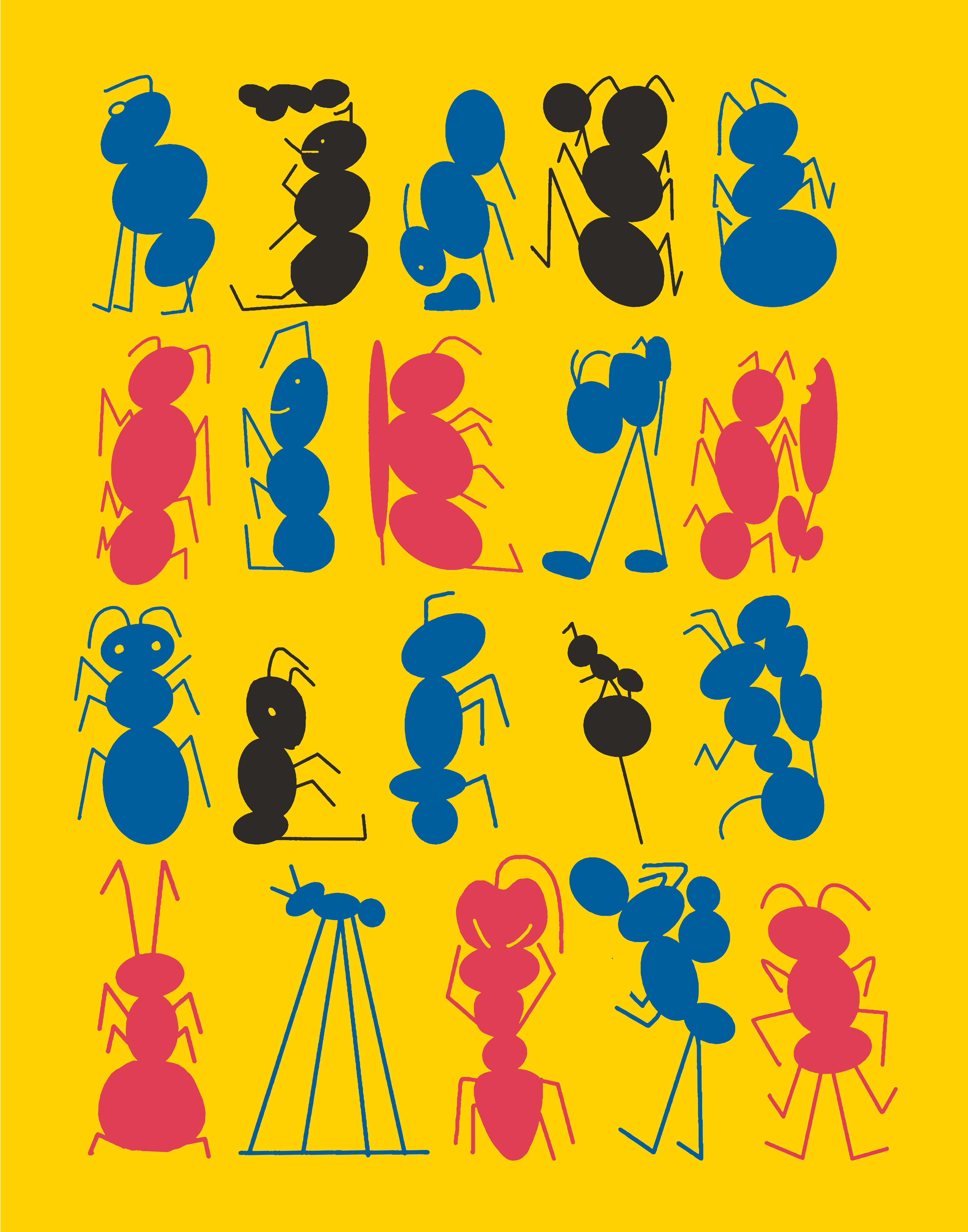 these illustrations show their inner world. each piece is a snapshot: ants as organizers, troublemakers, quiet revolutionaries. there's something about their collective intelligence that feels relevant to how we think about collaboration, systems, and invisible labor.