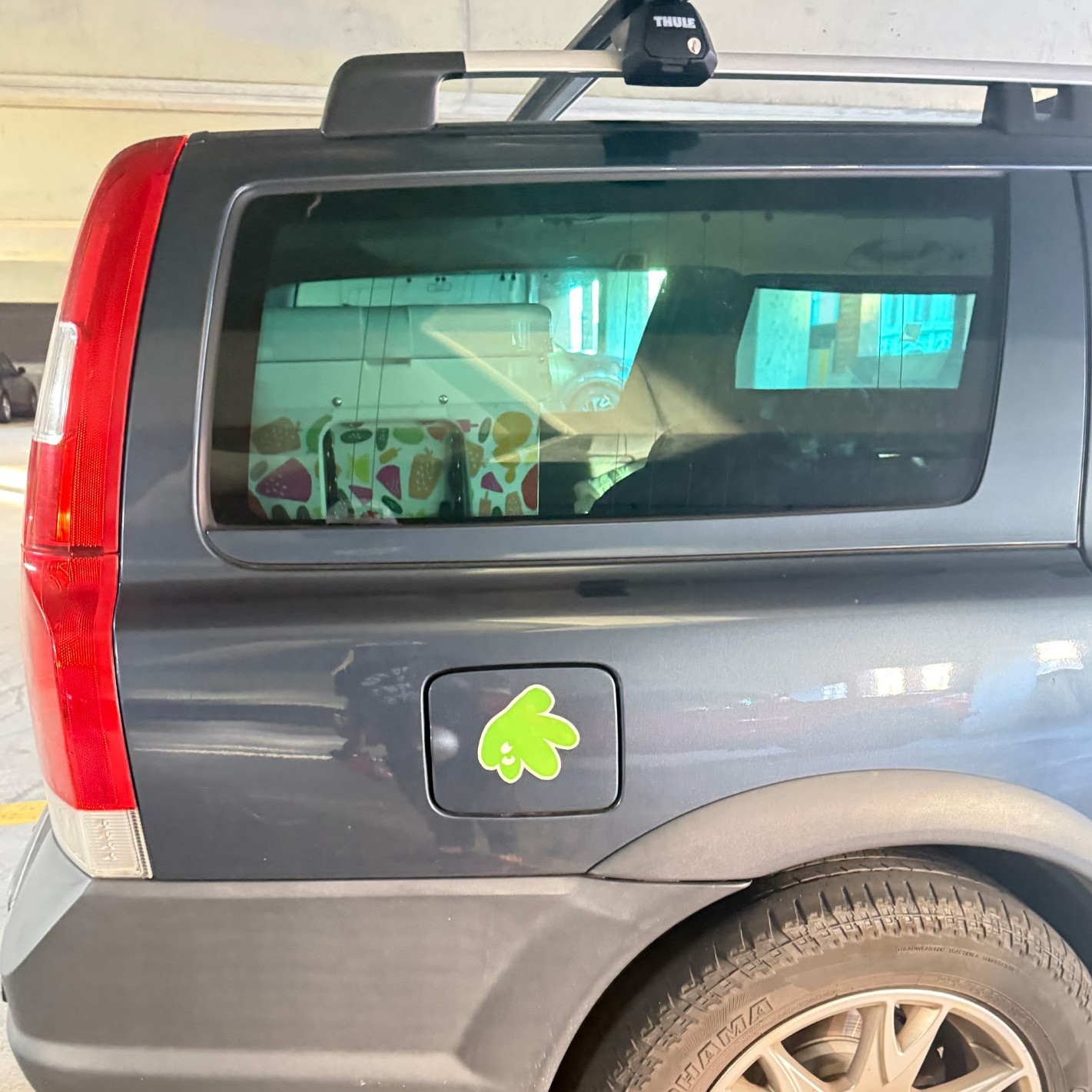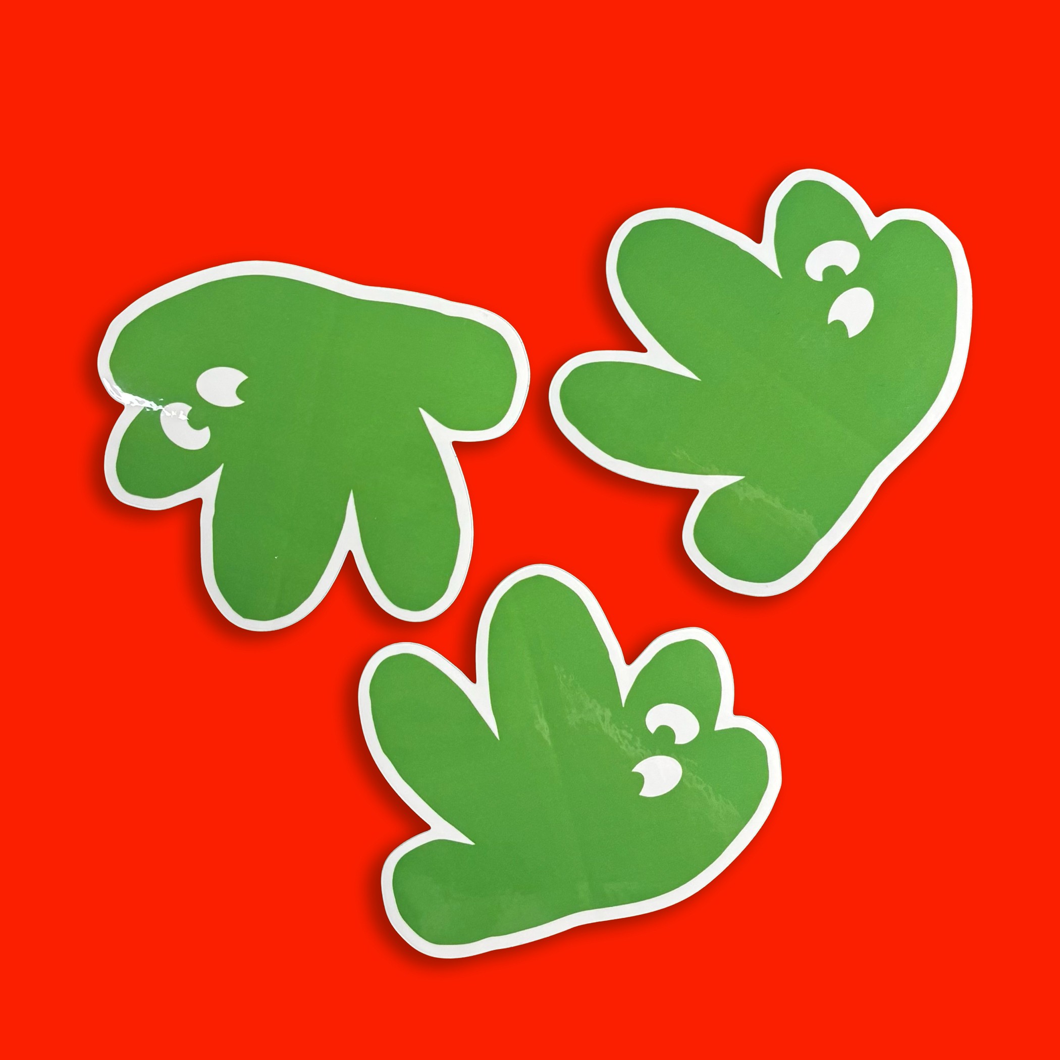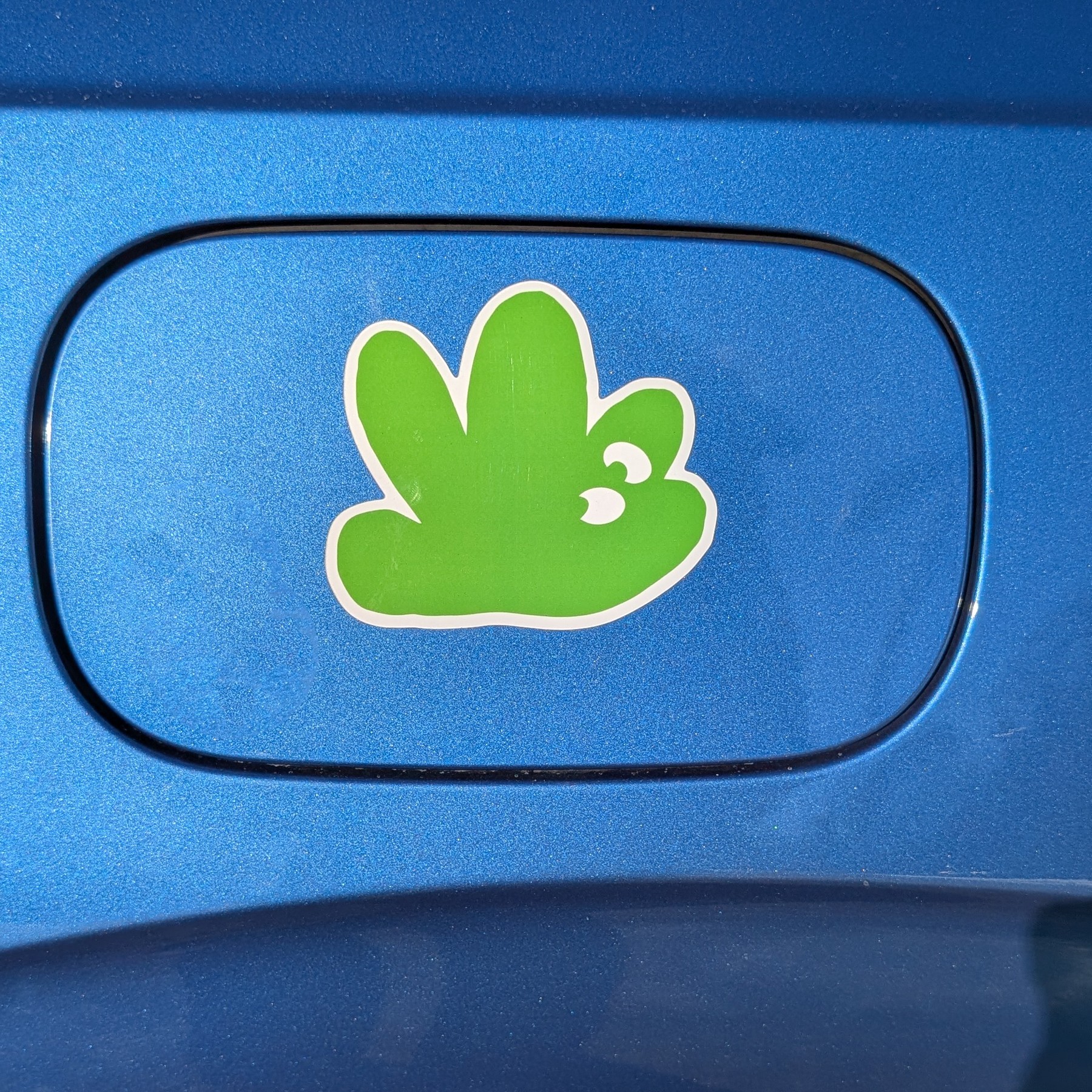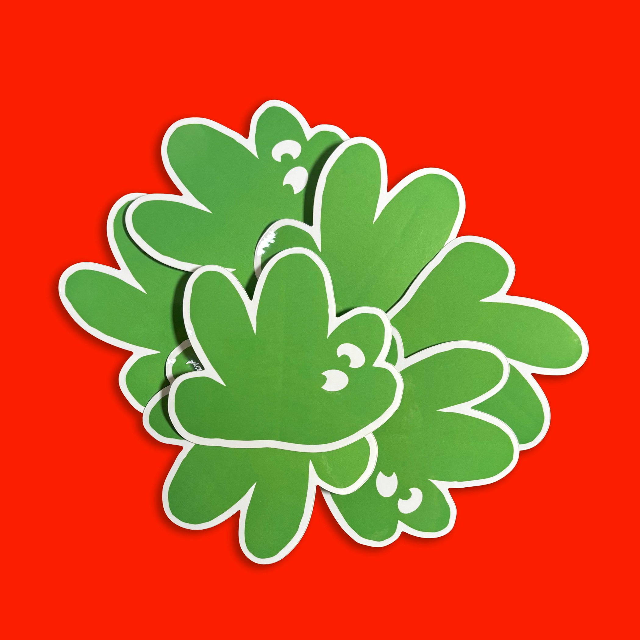 Vinyl sticker, die-cut. Flexible little guy who shifts shape depending on where you stick him. 3h x 2.5w inches (approx).