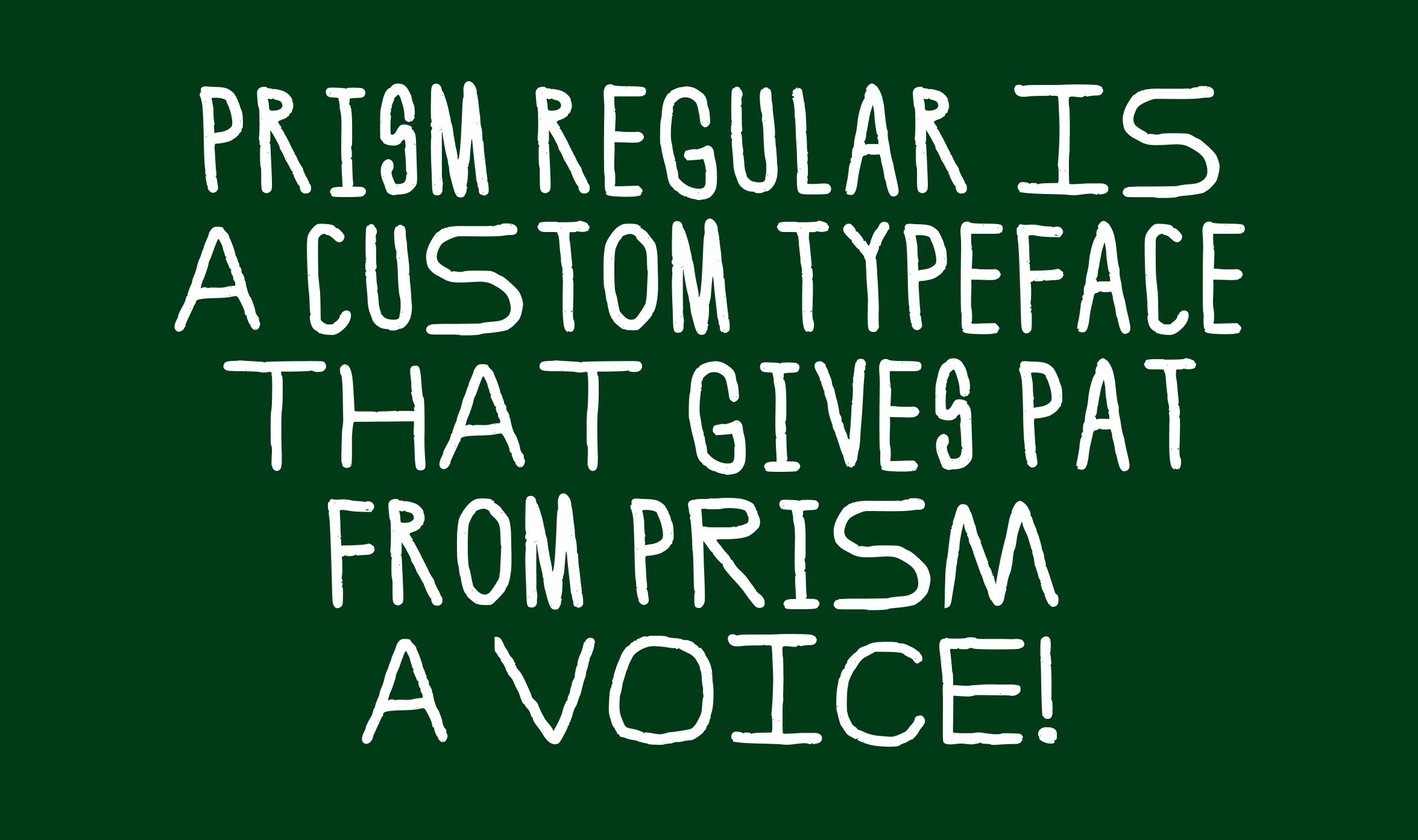 developed a custom typeface to give pat, prism's mascot, a voice. the letterforms are intentionally imperfect, with irregular widths and a mix of weights that feel more human than polished.
