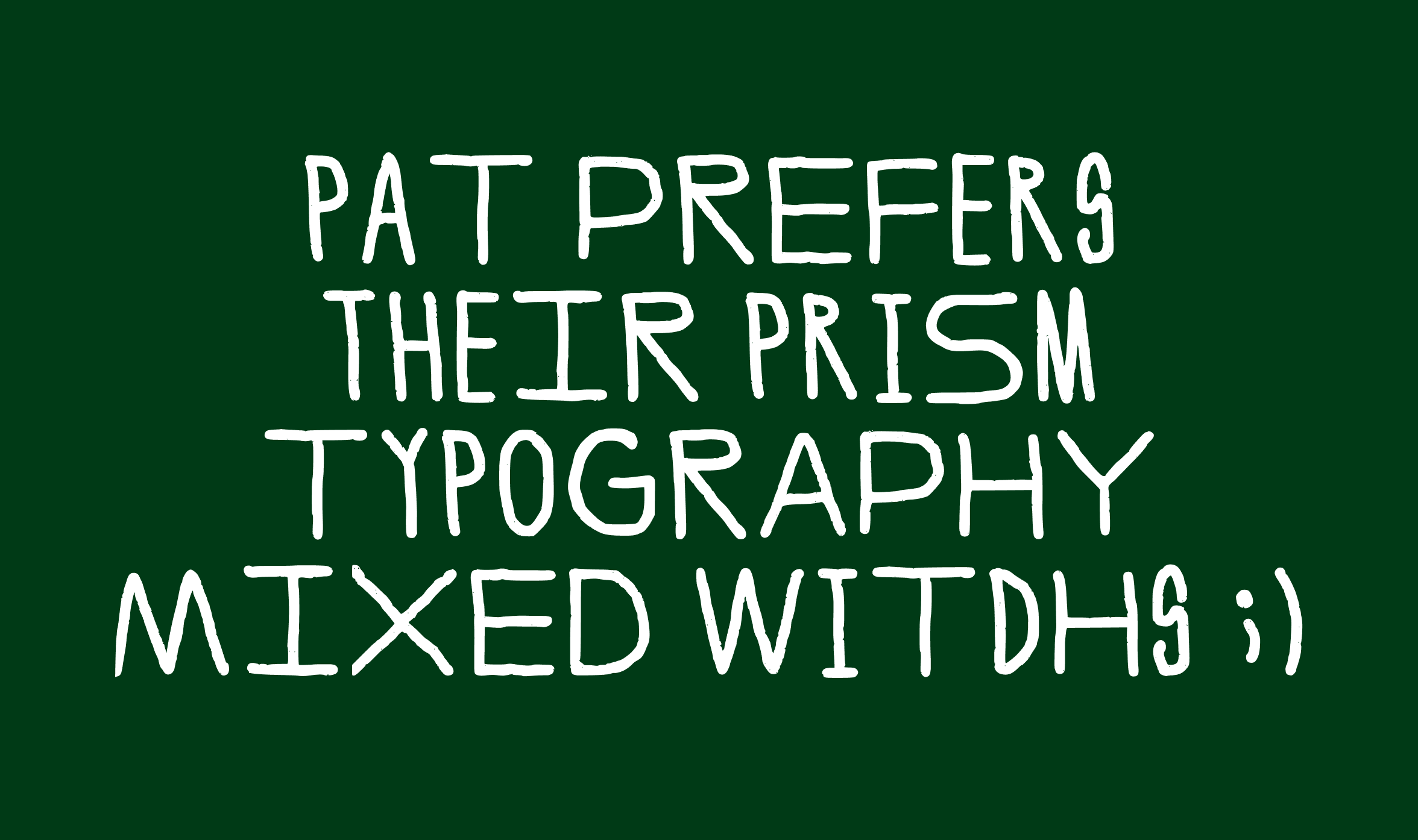 a custom typeface that gives pat a distinct voice within the prism brand. used across social, editorial, and brand moments where pat shows up. imperfect on purpose.