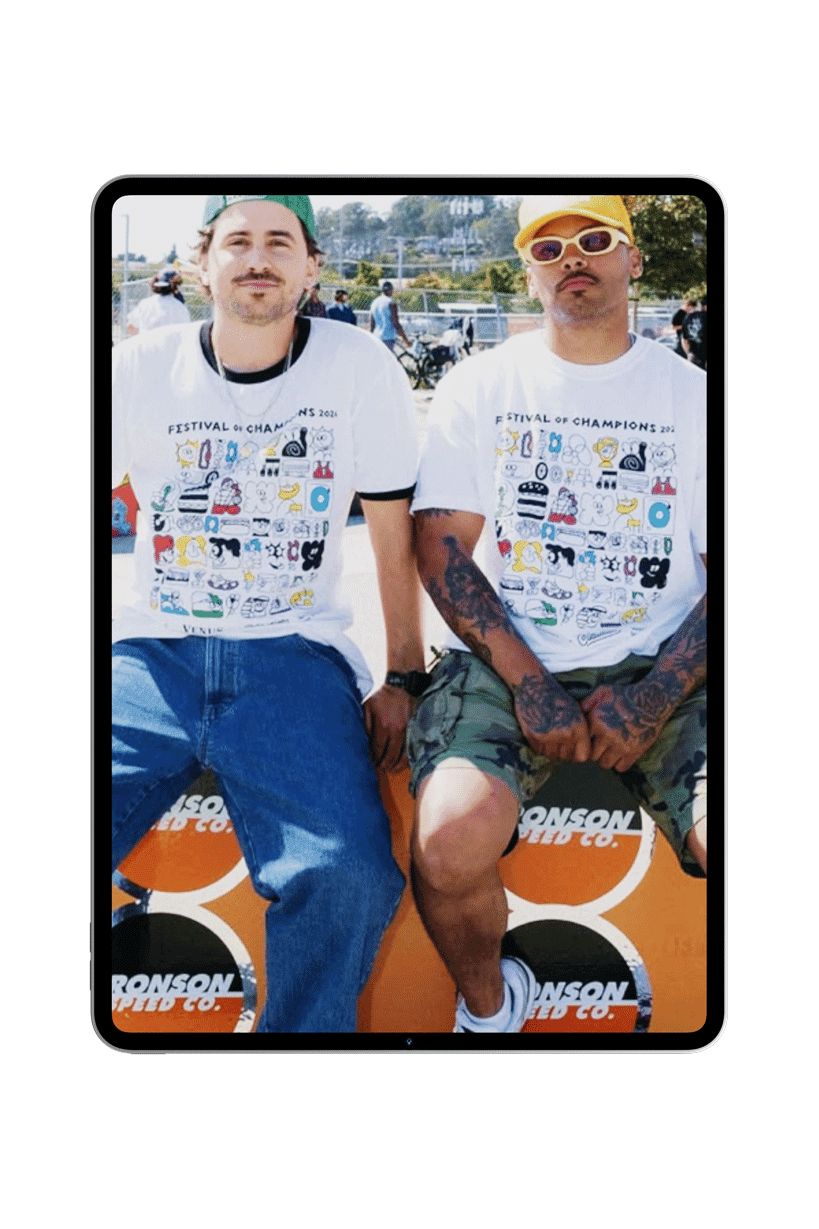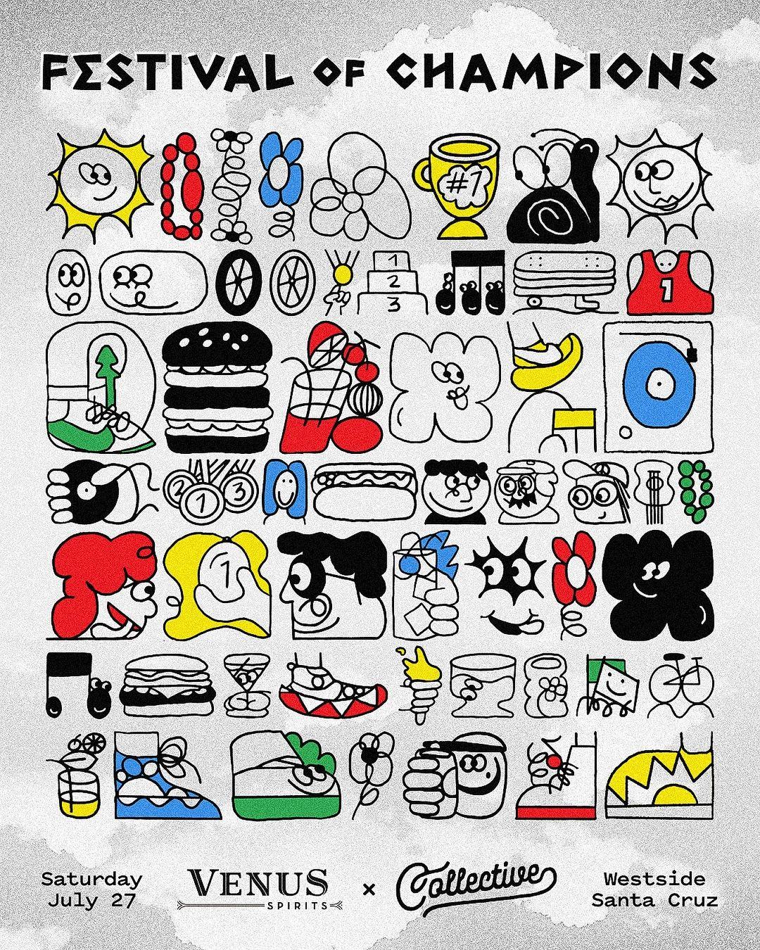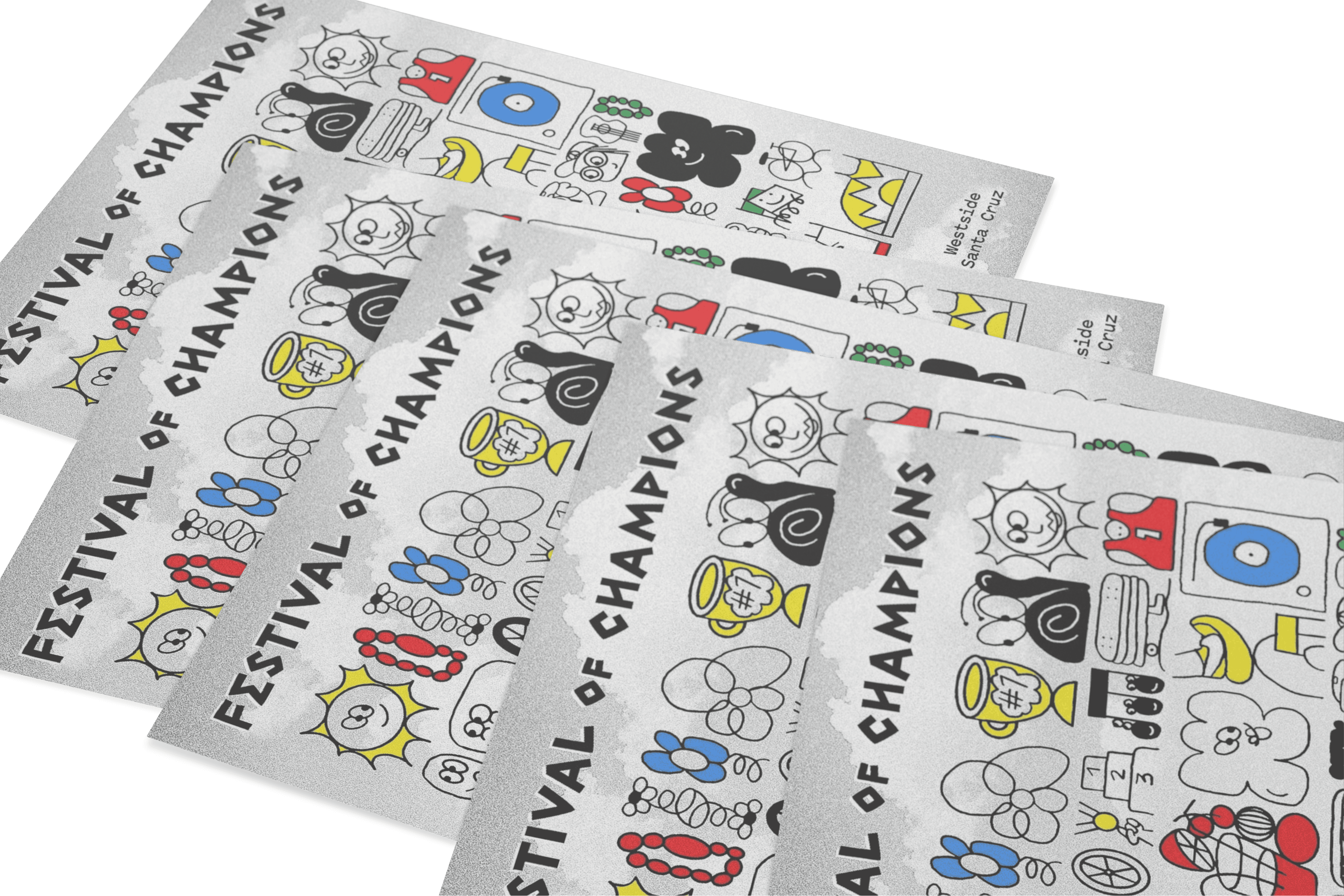 for their festival of champions, a playful event featuring a 3 mile fun run, skate jam, and vendor market, i illustrated assets for print collateral, merch, and social.