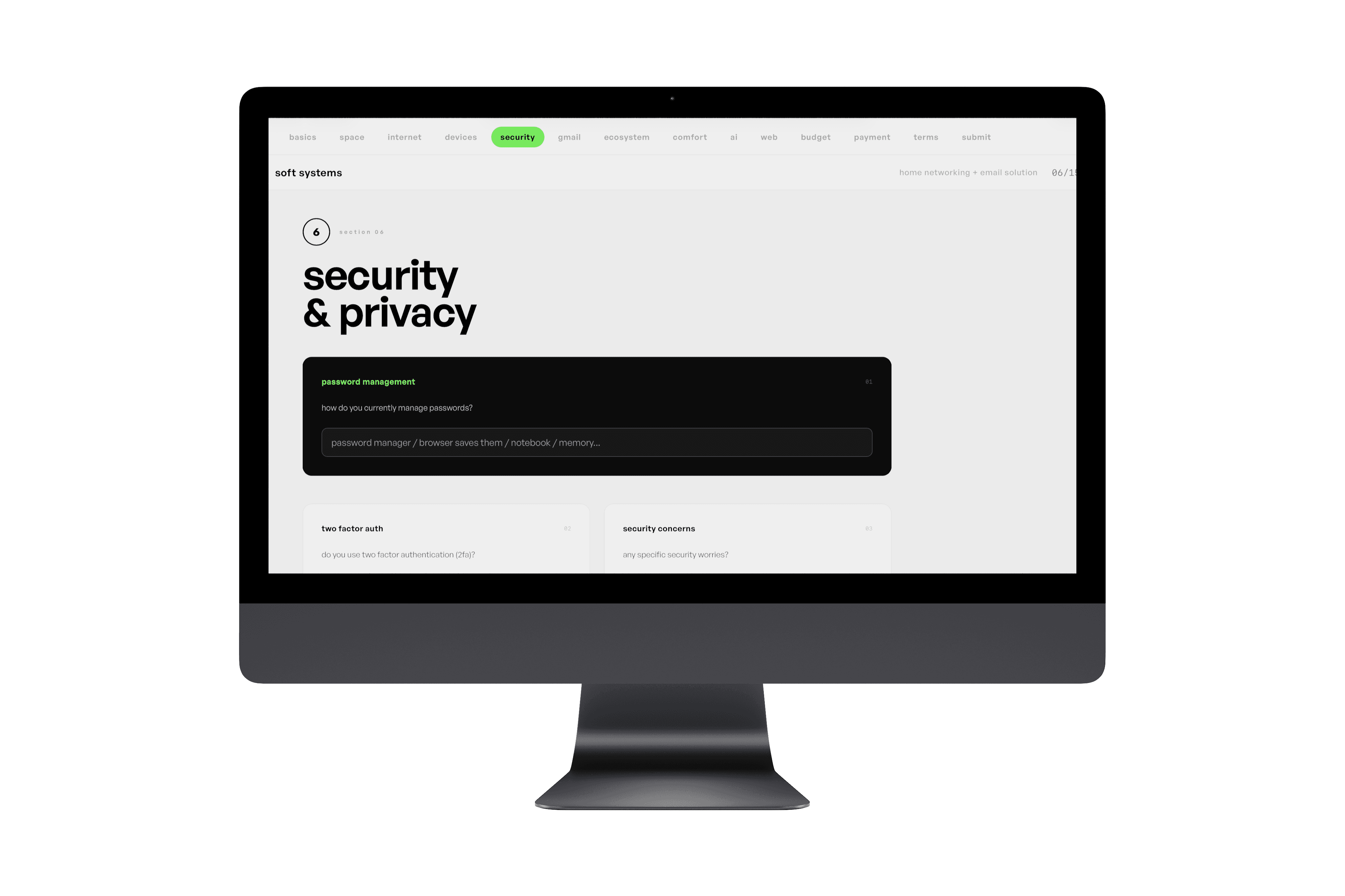 a newsletter and private tech support service focused on education and healthy tech practices. soft systems offers curated product selections, security guidance, and hands on support for clients who value privacy and want to actually understand what's running in their homes. invite only, referral based, built on trust.
